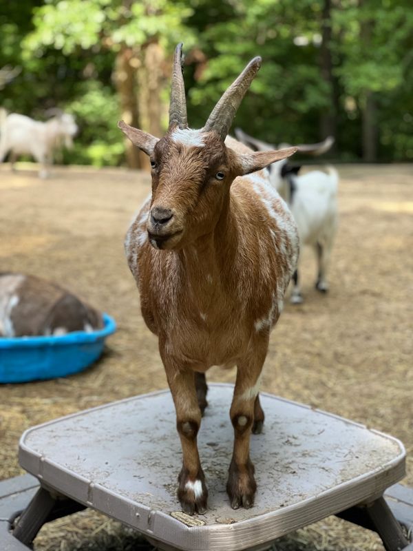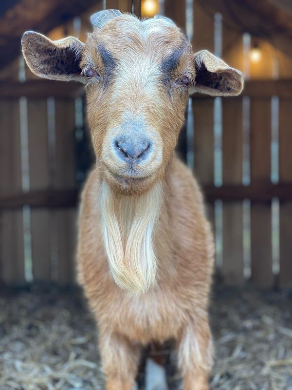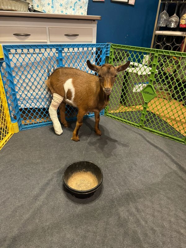 Old Man Gilly, most senior of all residents here at 11 years old, arrived at the sanctuary approximately 1.5 years ago. He was in poor overall condition, undernourished and had never had a loose mineral (necessary for all goats) in his life. In fall, 2021, Gilly was found hypothermic in the yard and unable to stand, let alone walk. He was immediately brought inside, warmed slowly and tests were run. In the weeks to follow, he received supportive care, several medications and supplements and physio to keep his legs stretched, since he was unable to move. After using a lift and sling to begin to get Gilly on his feet, he surprised us by pulling out his "get up and go". We had another 10 months with our wonderful old man, until his body decided that it was time. We lost our lovely boy on 10/19/2022 - gone, but never forgotten.